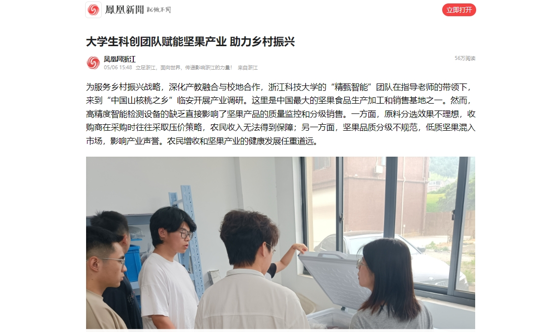 凤凰网·浙江:大学生科创团队赋能坚果产业 助力乡村振兴