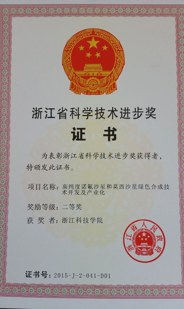 近日,在省人民大会堂召开的2015年度浙江省科学技术奖励大会上传来喜讯,我院蒋成君高工主持的“高纯度氟喹诺酮类药物绿色合成技术开发及产业化应用”获得2015省科学技术进步奖二等奖,肖功年教授主持的“大豆制品品质提升共性关键技术集成及产业化”获得2015省科学技术进步奖三等奖。