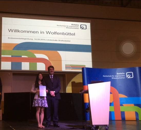 裘岚彬同学于2013年经由2+3联合培养项目,在德国Ostfalia应用科技大学自动化与能源系统专业深造。