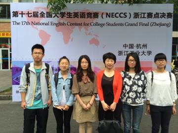 4月12日,在教务处和我院的共同努力下,2015年全国大学生英语竞赛初赛在我校顺利举行。全校共有693名学生(A类2人;B类89人;C类597人;D类5人)参与该项比赛。初赛选拔出5名学生参加了5月10日在浙江工业大学屏峰校区举行的全国大学生英语竞赛复赛。在师生的共同努力下,我院英语专业冯亚楠同学获得了B类全国一等奖,建工学院王轶、经管学院马洁琼、严丽文和机械学院顾佳瑜同学分获C类全国一等奖,我校获得优秀组织奖。此外,我校有11名同学获得全国二等奖,21名同学获得全国三等奖;另有16名同学获得校级一等奖,53名同学获得校级二等奖,85名同学获得校级三等奖。